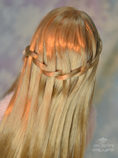 No.00000の極細筆で丁寧に彩色されたこのドールは、柔らかくロマンチックなメイクが特徴です。流れるような滝のようなヘアスタイルが、全体の印象にモダンなエレガンスを添えています。