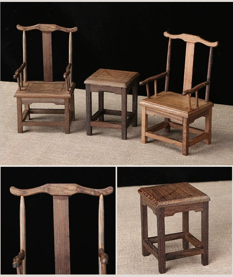 1/6スケール 中国アンティーク 太子椅子セット 椅子2脚とサイドテーブル1台| BJD&ブライス用 シノワズリスタイル ドールハウス家具|ヴィンテージ&エレガントな雰囲気
