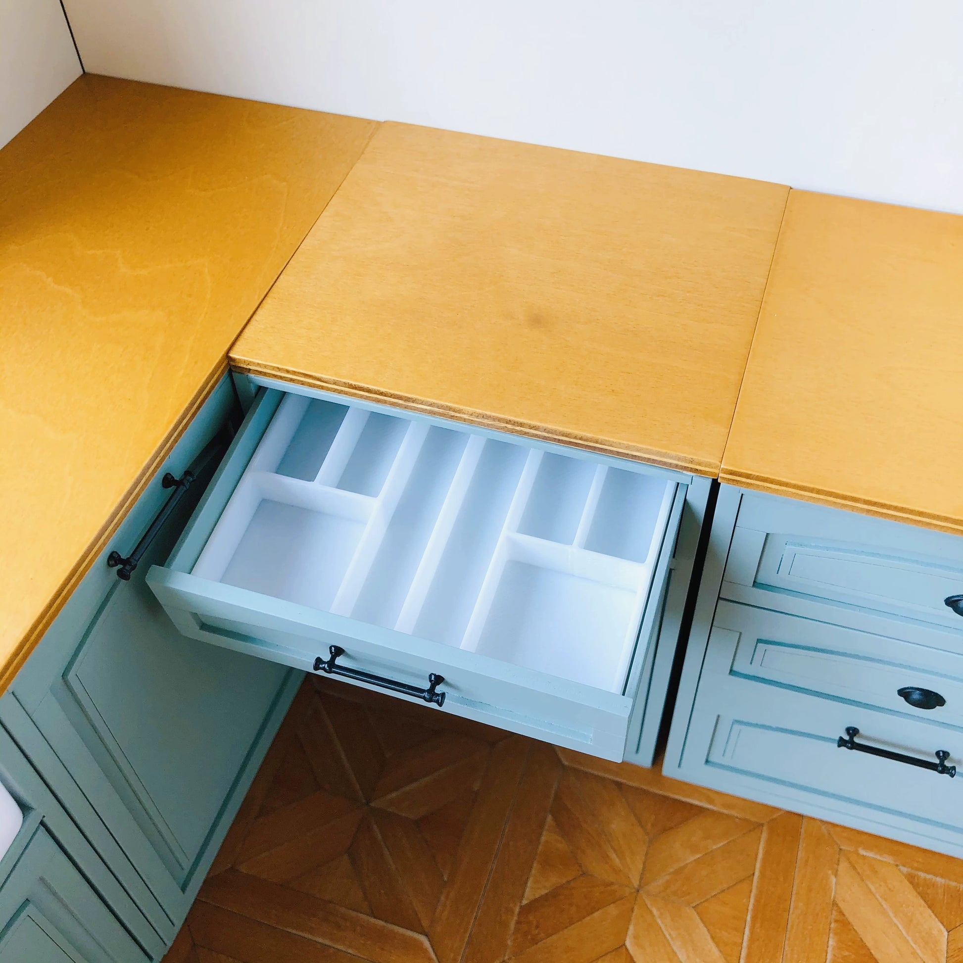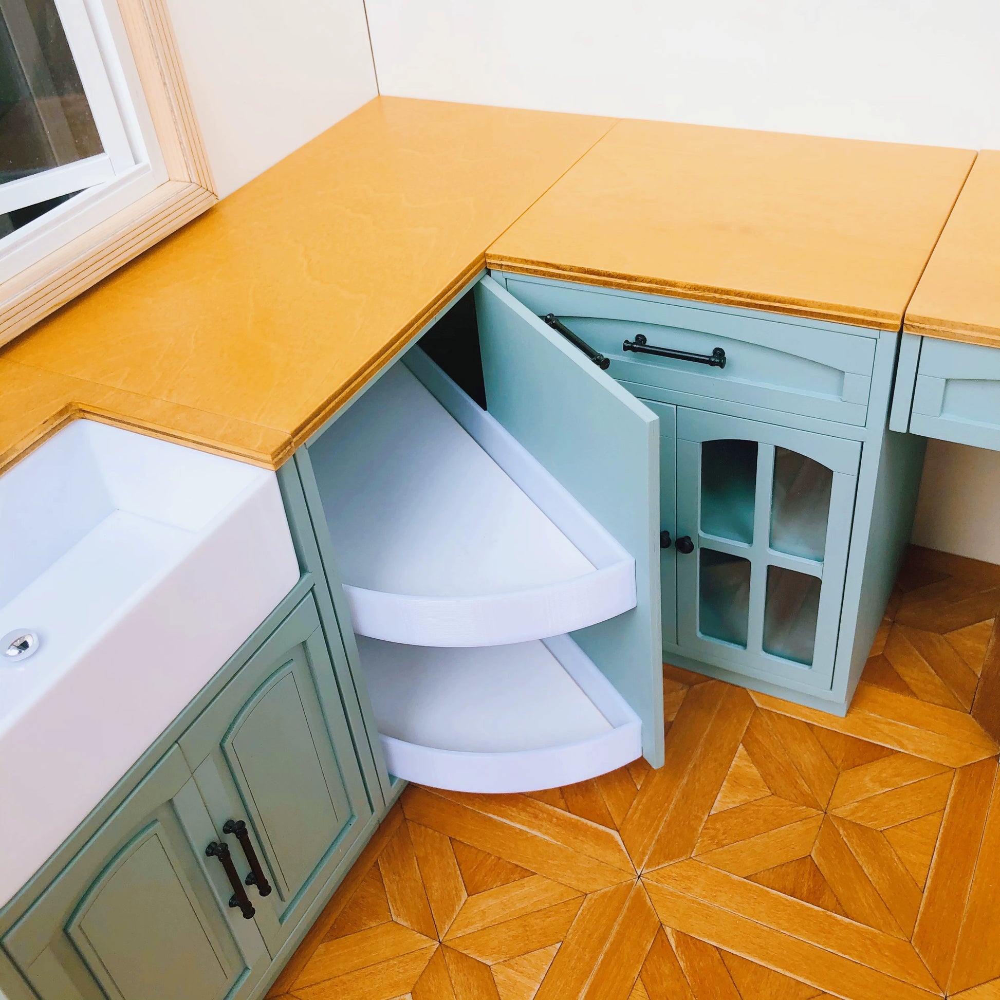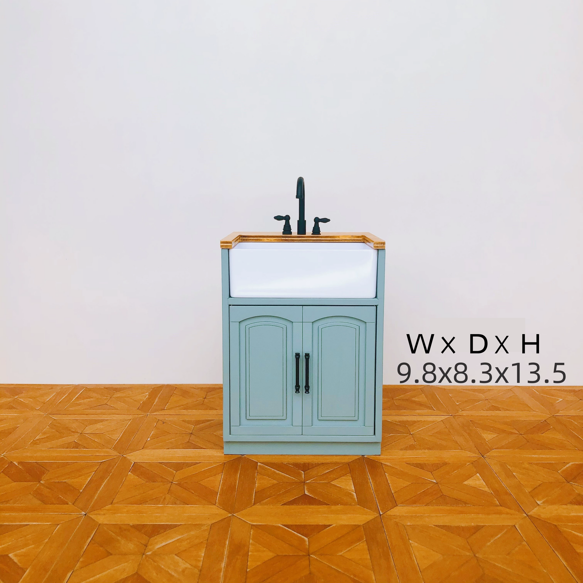 1/6スケール ドールハウス キッチン家具セット – 9ピース モジュラーキャビネット(ホワイト&ヴィンテージブルー) | BJD&ブライス ミニチュアキッチン