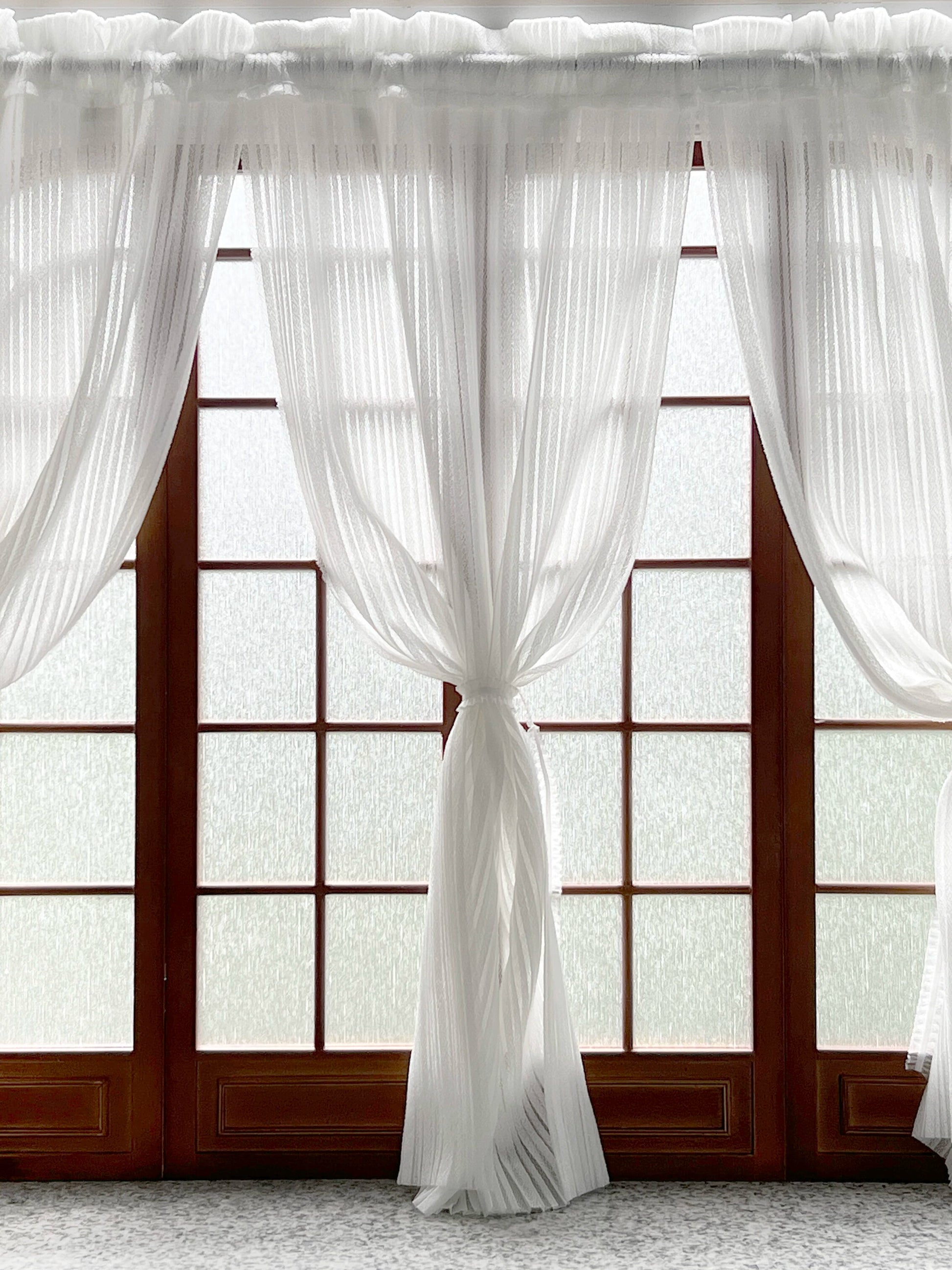 1/6スケール ホワイトレースカーテン – BJD&ブライス用ミニチュアドールハウス窓用ドレープ | 居心地の良い家庭的な雰囲気、3サイズ展開