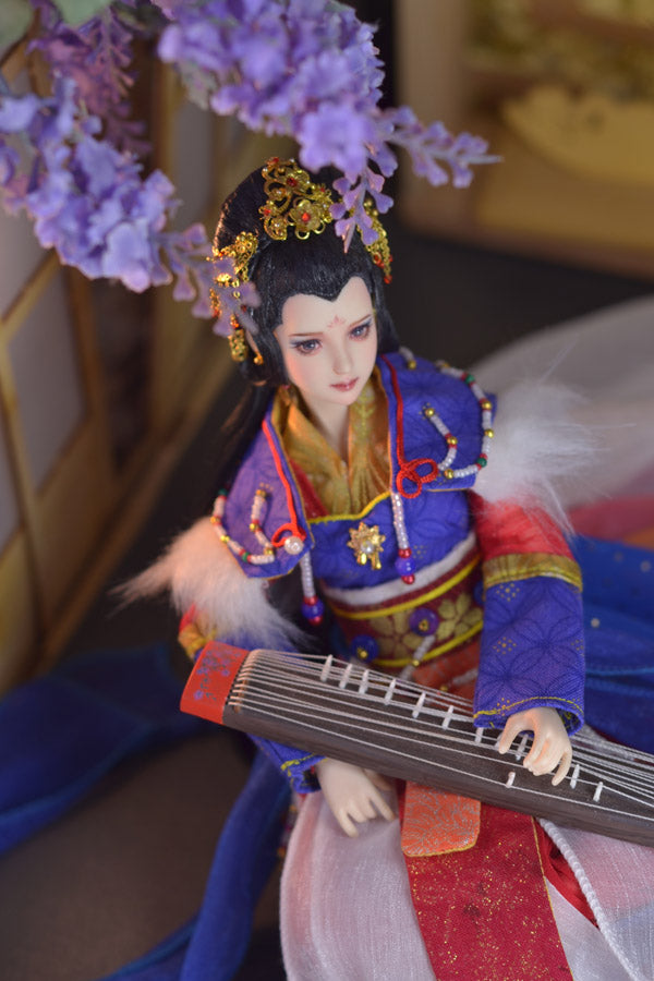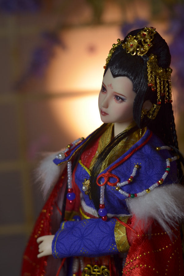 00000番の極細筆で彩色されたこの人形は、遠く離れた地へ嫁がざるを得なかった蘭陵王女の悲劇的な物語にインスピレーションを得ています。その表情には、幾時間にも及ぶ精緻な作業を経て洗練され、どこか哀愁を帯びた郷愁が漂います。