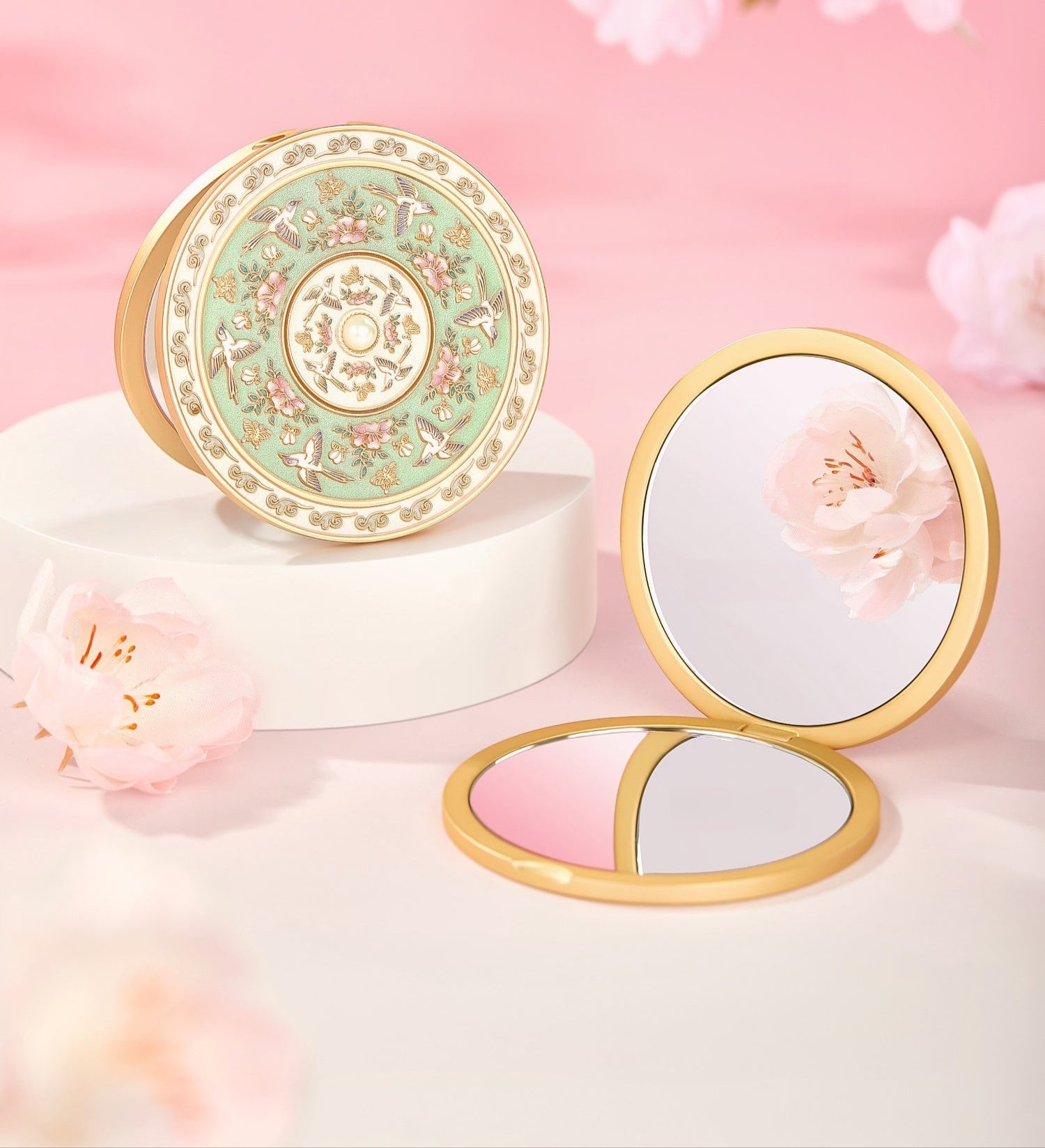 この携帯用ミラーは、故宮博物院に所蔵される千年以上の歴史を持つ銅鏡からインスピレーションを得てデザインされました。伝統的な中国美術と現代的な実用性を融合し、文化の気品と歴史の重みを手に伝えます。