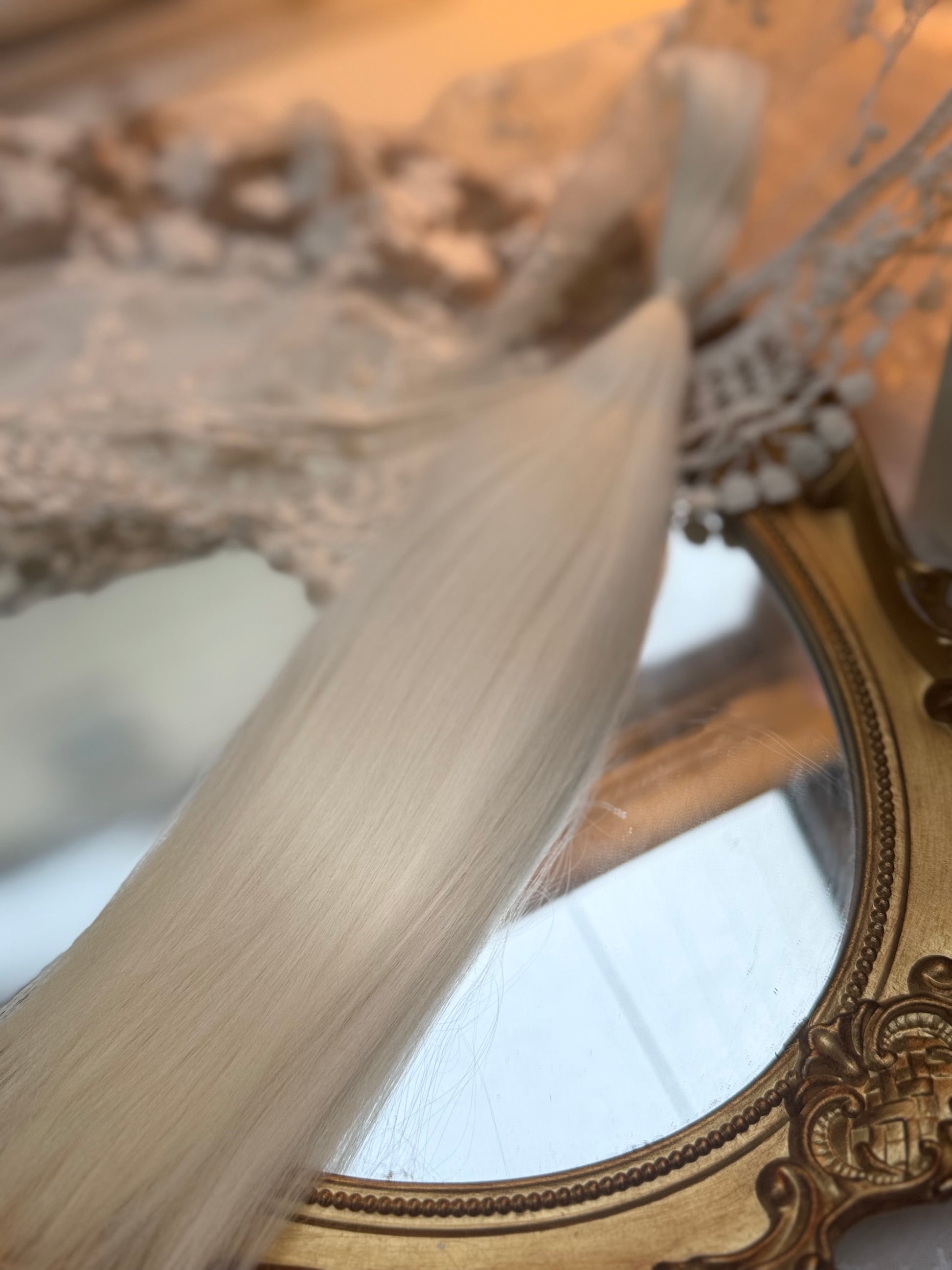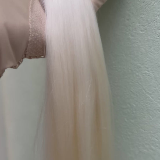 高い光沢と自然な動きのある仕上がりは、ストレートカットからカール、編み込みまで、エレガントなヘアスタイルに最適です。繊維は手作業で洗浄・コーミングされ、品質と輝きを保ちます。