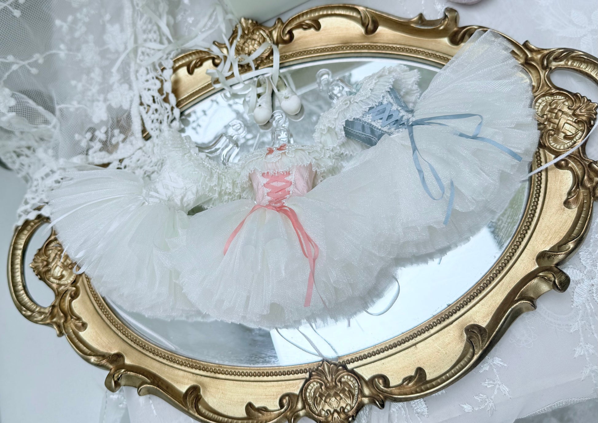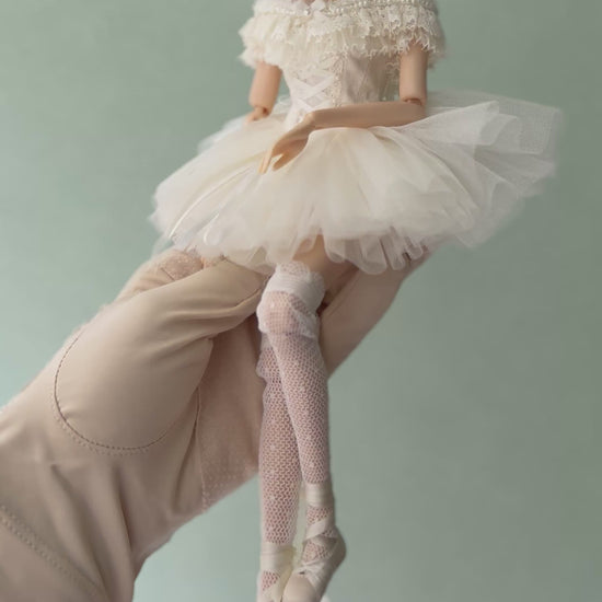 伝統的なバレエ衣装に着想を得て、繊細なチュールの重なりと優雅なシルエットが、まるで舞台の主役のようにドールを輝かせます。