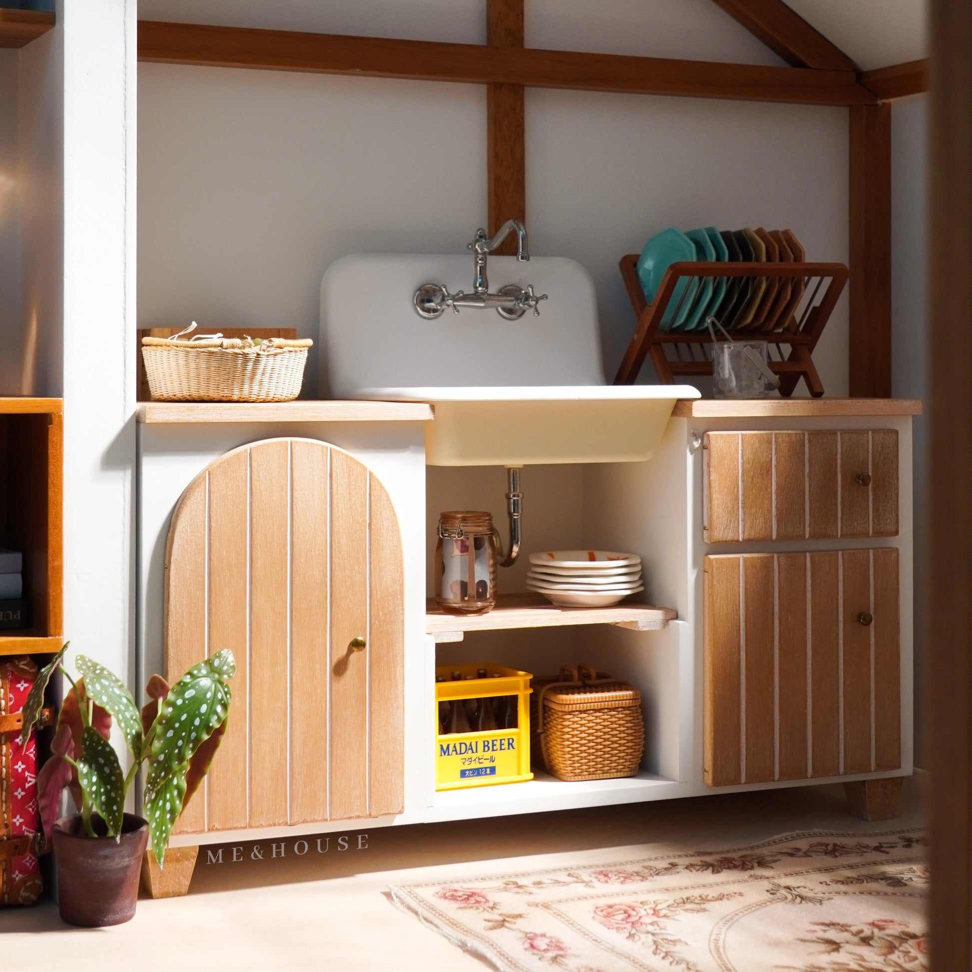 1:6 Mini Model Doll House Furniture Accessories Solid Wood Cupboard Kitchen Sink Side Cabinet Bjd Blyth Soldier Lol Decor Props